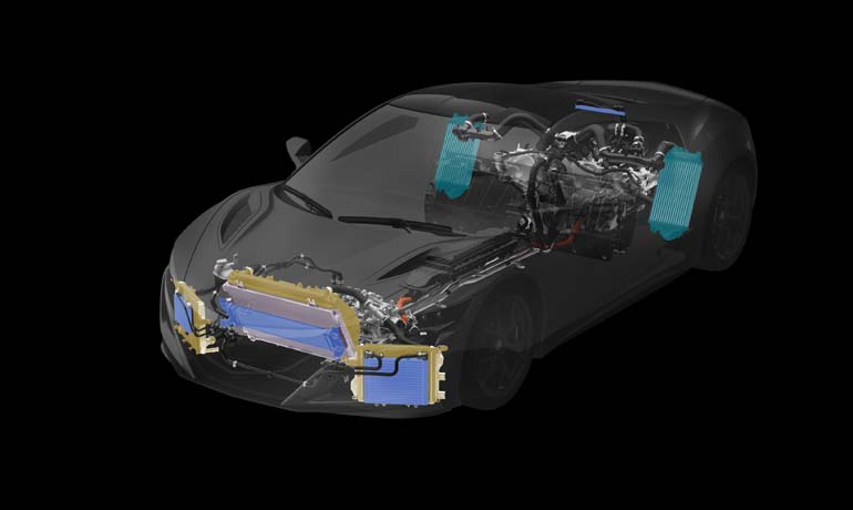 Εξαιρετική είναι και η αεροδυναμική, με τους σχεδιαστές να έχουν μελετήσει προσεκτικά κάθε παράμετρο. Η ομάδα εξέλιξης αναθεώρησε πλήρως το θερμικό και αεροδυναμικό πακέτο, μεγιστοποιώντας πλήρως τη ροή αέρα γύρω και μέσα από το NSX, χωρίς τη χρήση ενεργών αεροδυναμικών βοηθημάτων. Επιπλέον, το σύστημα κίνησης Sport Hybrid ψύχεται μέσω 10 εναλλακτών θερμότητας.
