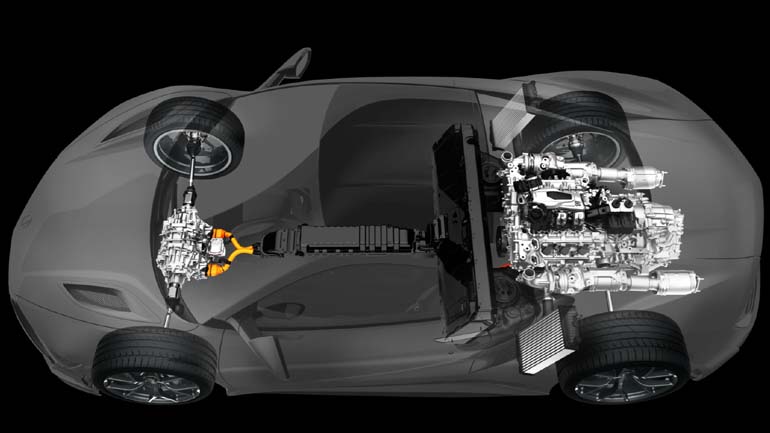 Σε ότι αφορά το μηχανικό σύνολο δεν είχαμε εκπλήξεις, με τον V6 3.5 twin turbo να αποτελεί την καρδιά του αυτοκινήτου. Συνδυάζεται με αυτόματο κιβώτιο διπλού συμπλέκτη 9 σχέσεων (DCT) και ένα ηλεκτροκινητήρα που εφαρμόζει τη ροπή του απευθείας στο στρόφαλο για υψηλότερη απόδοση με άμεση κατανομή ισχύος στους πίσω τροχούς.