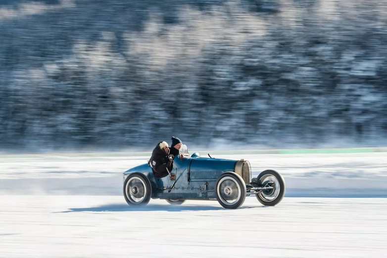 Στο St. Moritz της Ελβετίας, τρεις από τις συνολικά 40 Bugatti Bolide οδηγήθηκαν πάνω στην παγωμένη λίμνη, σε ένα παραμυθένιο σκηνικό, πολύ μακριά από τις κλασικές πίστες δοκιμών ή τα περιβάλλοντα όπου τέτοια hypercars δοκιμάζονται. Για πρώτη φορά, τρία από αυτά τα εξαιρετικά σπάνια, υπερυψηλών επιδόσεων αυτοκίνητα «ξεχύθηκαν» μαζί σε συνθήκες χαμηλής πρόσφυσης, δημιουργώντας ένα θέαμα που δύσκολα θα επαναληφθεί (επιστρατεύτηκαν μάλιστα από αεροσκάφη μέχρι και επαγγελματίες αθλητές καλλιτεχνικού πατινάζ).