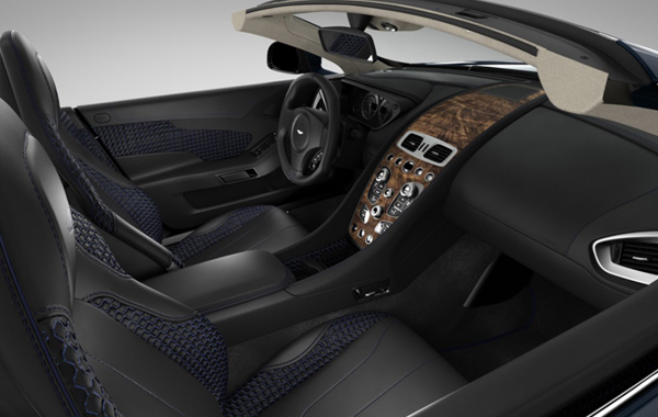 Το τμήμα εξατομίκευσης «Q» της Aston Martin, το οποίο είναι υπεύθυνο για την ειδική έκδοση, έχει τοποθετήσει στην καμπίνα δερμάτινες μαύρες επενδύσεις με μπλε μπορντούρα και ξύλο καρυδιάς στο ταμπλό.