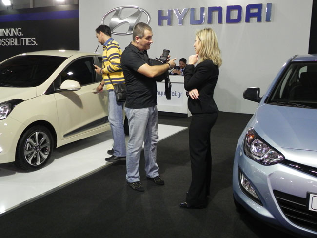 Ο δημοσιογράφος Δημήτρης Σπυράκης συνομιλεί (;) με την κ. Γιαννέλη της Hyundai. Φυσικά δεν την άφησε να μιλήσει ούτε λεπτό!!!