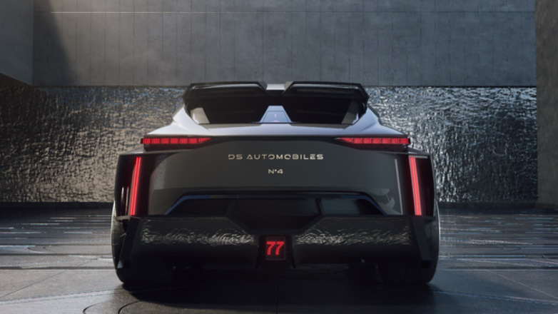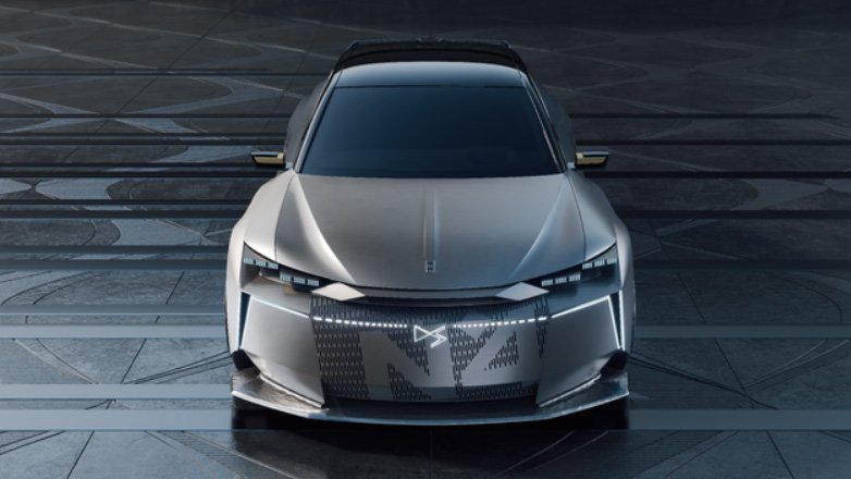Βασισμένο στο N°4, ένα εμβληματικό μοντέλο για τη DS, το concept ξεχωρίζει για τη δυναμική fastback σιλουέτα, το φωτισμένο λογότυπο στο κέντρο της μάσκας και τα φουτουριστικά φωτιστικά σώματα με pixel design. Οι σχεδιαστές έδωσαν έμφαση στην αεροδυναμική, με χαμηλωμένη σιλουέτα και φαρδιά μετατρόχια που αποπνέουν αγωνιστική αισθητική.