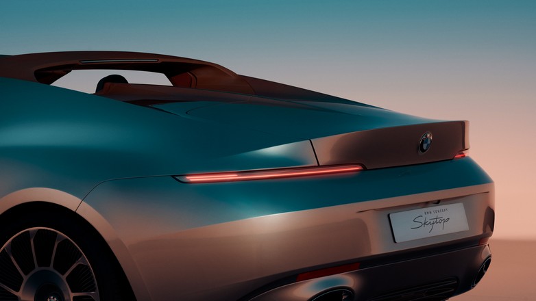 Παρατηρώντας την από ψηλά, το προτεταμένο καπό με την έντονη κυρτότητα, η εμβληματική σχεδίαση του ρύγχους καρχαρία της BMW με τη φωτιζόμενη μάσκα νεφρών και το αφαιρούμενο πίσω τμήμα, προσελκύουν το βλέμμα. Οι αναφορές στην BMW Z8, το θρυλικό roadster της εταιρείας, έχουν επιλεγεί με προσοχή. Ιδιαίτερα εντυπωσιακή είναι η έντονη σφηνοειδής ακμή που εκτείνεται από το καπό, και μέσω του εσωτερικού καταλήγει σε ένα αλουμινένιο διακοσμητικό που βρίσκεται τοποθετημένο στην πίσω πόρτα, τονίζοντας τη δυναμική ροή της σιλουέτας.