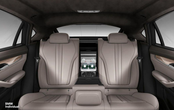 Στο εσωτερικό, έχουν τοποθετηθεί δερμάτινες επενδύσεις Merino στο χρώμα της τέφρας (Taupe), ξύλινο-δερμάτινο τιμόνι και διακοσμητικά σε μαύρο γυαλιστερό και σκούρο καφέ. O ουρανός της καμπίνας είναι επενδυμένος με alcantara, τα μαρσπιέ είναι ανασχεδιασμένα, ενώ ανάμεσα στα πίσω καθίσματα υπάρχει ακόμα και ψυγείο.
