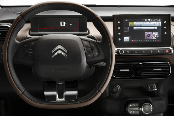 Σύγχρονο, λειτουργικό, άνετο και μινιμαλιστικό είναι και το εσωτερικό του C4 Cactus. Στο ταμπλό υπάρχουν ελάχιστοι διακόπτες και κουμπιά, με τις δύο οθόνες να αναλαμβάνουν όλες τις λειτουργίες. Η μία φιλοξενεί τον πίνακα οργάνων και η δεύτερη τις υπόλοιπες ενδείξεις που χρειάζεται ο οδηγός.