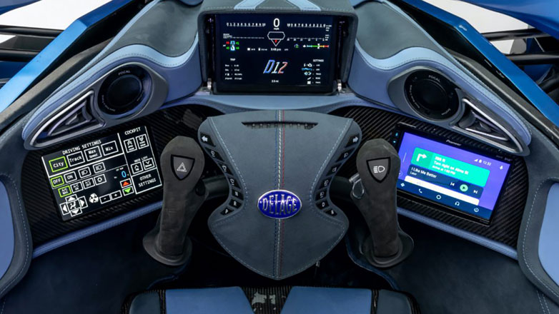 Η Delage έχει κεντρική θέση οδήγησης, όπως και στη Formula 1, αν και διαθέτει χώρο για έναν επιβάτη πίσω από τον οδηγό. Για να μπει ο οδηγός και ο επιβάτης, σηκώνεται ολόκληρος ο θόλος προς τα επάνω, μιας και δεν υπάρχουν πόρτες, ενώ κατά παραγγελία υπάρχει και πλήρως ανοικτή έκδοση.