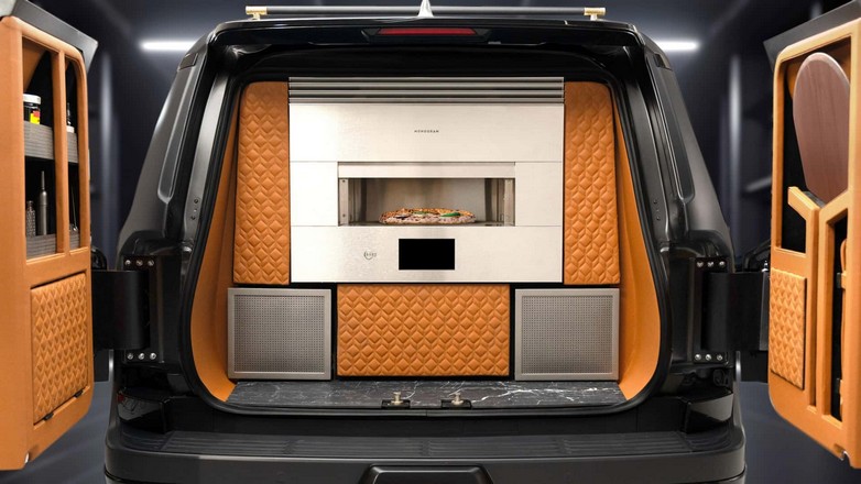 Η Lexus εξόπλισε το GX με έναν ηλεκτρικό φούρνο 76εκατ. της Monogram για ψήσιμο πίτσας, ψωμιού ή ότι άλλο λαχταρά οδηγός και επιβάτες. Διαθέτει επίσης θήκες ψύξης για τα ποτά στην κεντρική κονσόλα μέχρι και μαχαιροπήρουνα, όπως και αποθηκευτικό χώρο για τον μαγειρικό εξοπλισμό.