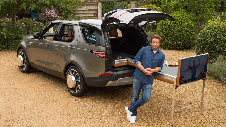Οι άνθρωποι του τμήματος Special Vehicle Operations (SVO) έκαναν τελικά το όνειρό του πραγματικότητα, χρησιμοποιώντας ως βάση το καινούργιο Land Rover Discovery. Το επταθέσιο SUV διαθέτει εστίες, συσκευές, πλήρες σετ μαγειρικής, ψησταριά, ράφια για λαχανικά και μπαχαρικά, ειδική θήκη αποθήκευσης για το αγαπημένο ελληνικό λάδι του Jamie, εκτεινόμενο πάγκο, τραπέζι, παρασκευαστές ζυμαρικών και γλυκών, ακόμη και φρυγανιέρα.
