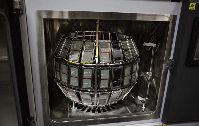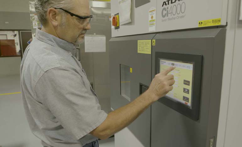Για να αξιολογήσει τις επιπτώσεις της ηλιακής ενέργειας στη βαφή και σε άλλα υλικά, ένας λαμπτήρας Xenon των 4.000 Watt «ψήνει» 100 δείγματα στα ίδια μήκη κύματος με τον ήλιο. Τα δείγματα περιστρέφονται γύρω από τη λάμπα Xenon για να μιμηθούν την τροχιά της Γης. Οι μηχανικοί παρατηρούν τα δείγματα μέσω μιας σειράς κύκλων, ερευνώντας τυχόν αλλοιώσεις.