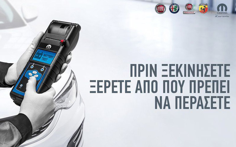 Εν όψει της έναρξης της καλοκαιρινής περιόδου, η Mopar – επίσημη μάρκα υπηρεσιών του ομίλου FCA – προσφέρει διαγνωστικό έλεγχο σε όλους τους κατόχους των μοντέλων Fiat, Fiat Professional, Alfa Romeo και Abarth, καθώς και έκπτωση 20% στις μπαταρίες και στα ανταλλακτικά.
