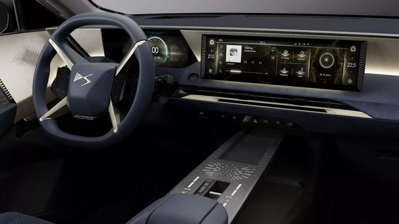 Τα ανάγλυφα ένθετα σε μοτίβο «Clous de Paris» (εμπνευσμένα από την υψηλή ωρολογοποιία και τα κοσμήματα) που συναντούμε στο τιμόνι και τους αεραγωγούς, καθώς και οι μαργαριταρένιες ραφές στο ταμπλό και τα υποβραχιόνια, παραμένουν εμβληματικά στοιχεία της μάρκας. Σε συνδυασμό με τις δερμάτινες επενδύσεις Nappa σε μοτίβο μπρασελέ ρολογιού, ενισχύουν τον αποκλειστικό χαρακτήρα των εσωτερικών της DS Automobiles.