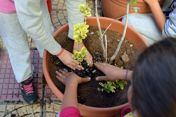 απαραίτητο υλικό για τη δράση. Στελέχη της Drive A.E. συμμετείχαν εθελοντικά στη συλλογή και μεταφορά χώματος και φυτών με ένα από τα mini van της εταιρίας καθώς και στη φύτευση. Δυναμικό παρόν δόθηκε στον προαύλιο χώρο του σχολείου, τόσο από μαθητές όσο και από γονείς, με τα πλατιά χαμόγελα παιδιών και μεγάλων να γεμίζουν με αισιοδοξία την ατμόσφαιρα.