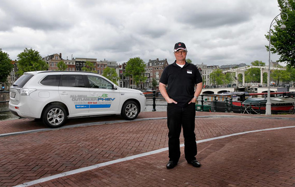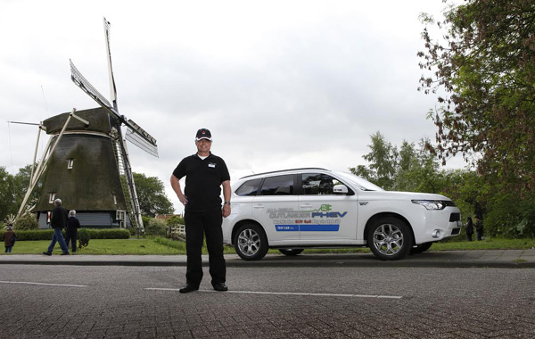Οδηγός της δοκιμής του Outlander PHEV, ήταν ο πρώην πιλότος της Swiss, Felix Egolf. Στις 12 Μαΐου ξεκίνησε από τα κεντρικά γραφεία της Mitsubishi Ελβετίας με προορισμό τον επίσημο αντιπρόσωπο της εταιρείας στην Ολλανδία.