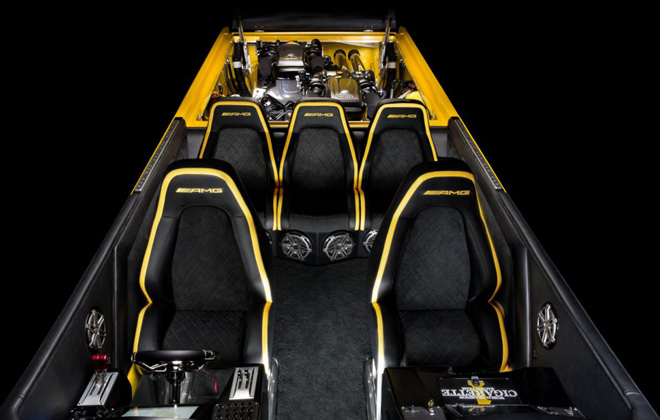 Στην καμπίνα υπάρχουν πέντε μπάκετ καθίσματα της AMG, ενώ όλο το εσωτερικό είναι κατασκευασμένο στο χέρι και περιλαμβάνει επενδύσεις από alcantara. Το πιλοτήριο είναι τελευταίας γενιάς και διαθέτει τα πιο σύγχρονα όργανα. Παρέχεται συνδεσιμότητα bluetooth, έλεγχος μέσω υπολογιστή, τέσσερις οθόνες υψηλής ανάλυσης, πλοήγηση των Garmin και Cigarette, καθώς και ηχοσύστημα.