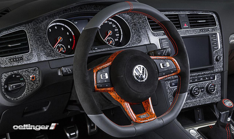 Οι άνθρωποι της Oettinger, έχουν κάνει εκτεταμένες μετατροπές και στο εσωτερικό, με τα ανθρακονήματα, τις επενδύσεις αλουμινίου, δέρματος και alcantara, να περιβάλλουν όλη την καμπίνα. Φυσικά, δεν θα μπορούσαν να λείπουν τα μπάκετ καθίσματα και το σπορ τιμόνι.