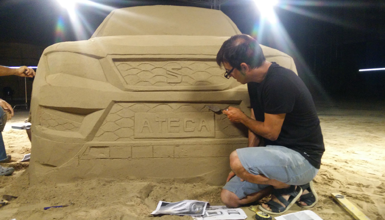 Ο Ισπανός εικαστικός, ο οποίος θεωρείται κορυφαίος του είδους, προσελήφθη από τη Seat ώστε να φιλοτεχνήσει ένα μοναδικό Ateca από άμμο, σε πραγματικό μέγεθος. Το εφήμερο γλυπτό θα εκτίθεται στο Terminal 1 του αεροδρομίου, μέχρι το τέλος Οκτωβρίου, δίπλα σε ένα κανονικό μοντέλο και ο τίτλος της έκθεσης είναι «Created in Barcelona». Για την κατασκευή του χρησιμοποιήθηκαν 26 τόνοι άμμοι, με το αποτέλεσμα να εντυπωσιάζει.