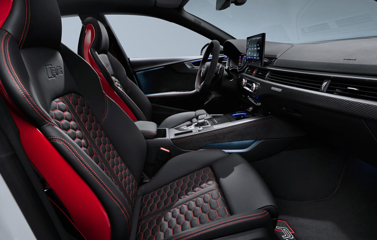 Τα διακοσμητικά πακέτα γυαλιστερού μαύρου, ματ αλουμινίου ή ανθρακί αναδεικνύουν τα σπορτίφ χαρακτηριστικά των οχημάτων. Οι αποχρώσεις Turbo μπλε και κόκκινο Tango έχουν προστεθεί στην παλέτα χρωμάτων, με το RS5 Coupé να φέρει carbon οροφή με δομή CFRP.
