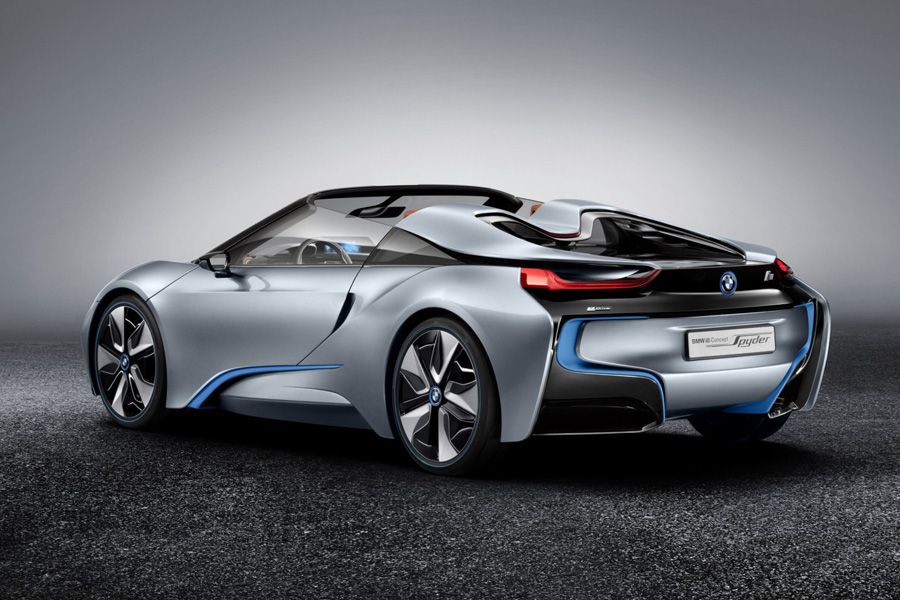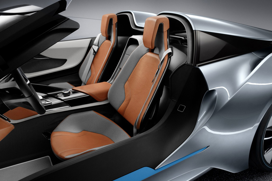 Το i8 Concept Spyder είναι ακόμα πιο εντυπωσιακό, διαθέτοντας κρυστάλλινο καπό πίσω, μαύρο πλαίσιο στο παρμπρίζ και διαφορετική καμπίνα με δύο θέσεις. Είναι 150 κιλά βαρύτερο από το i8 Concept φθάνοντας τα 1.630 κιλά, με την αναλογία βάρους να είναι στο 50:50.