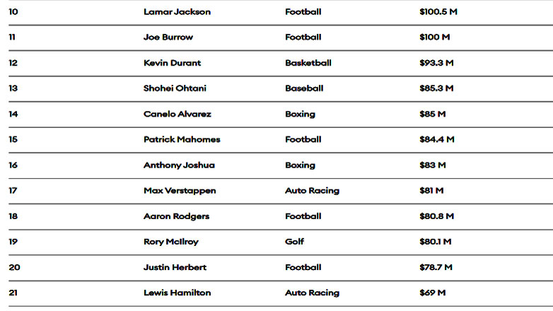 Όπως κάθε χρόνο, έτσι και φέτος το Forbes δημοσίευσε τη λίστα με τους πιο ακριβοπληρωμένους αθλητές του πλανήτη. Μία λίστα που περιλαμβάνει αθλητές από όλα τα αγωνίσματα και τα ποσά πραγματικά ζαλίζουν, άλλες φορές φέρνοντας θαυμασμό και άλλες μεγάλη κριτική από τον κόσμο.