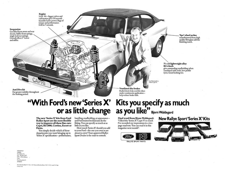 Την ίδια στιγμή, η δυνατότητα εξατομίκευσης του Ford Capri με ειδικές επιλογές ήταν ανέκαθεν ένα σημαντικό μέρος της γοητείας του μοντέλου. Με τα κιτ «Series X» που λανσαρίστηκαν για το Capri το 1977 οι πελάτες μπορούσαν να επιλέξουν χαρακτηριστικά με την υπογραφή της Ford Rallye Sport ώστε το αυτοκίνητο να συνδυάζει την απόδοση στο δρόμο με την εμφάνιση που επιθυμούσαν.
