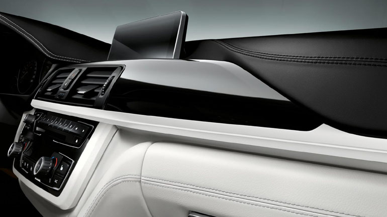 Στο εσωτερικό, τοποθετήθηκαν λευκές δερμάτινες επενδύσεις ανώτερης ποιότητας, που συνδυάζονται αρμονικά με τα μαύρα υλικά στο ταμπλό και στις πόρτες. Η ίδια διχρωμία ακολουθείται και στο σπορ τιμόνι με την υπογραφή M, ενώ τα διακοσμητικά στην κονσόλα είναι γυαλιστερά.