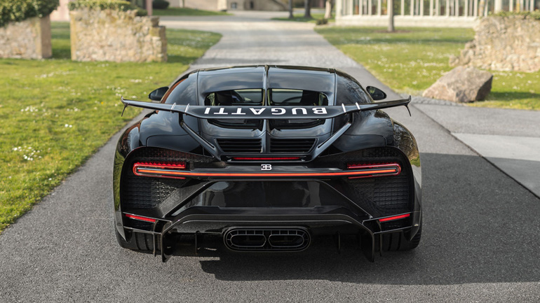 Το αυτοκίνητο ήταν μια Chiron Pur Sport. Ο πελάτης επέλεξε να βαφτεί το αμάξωμα στη μαύρη απόχρωση «Nocturne» με φινίρισμα «Grey Carbon», τροχούς σε «Gun Powder» και το λογότυπο σε «Gris Rafale». Το κάλυμμα του κινητήρα είναι από εξαιρετικά ελαφρύ και ανθεκτικό ανθρακόνημα, ενώ πίσω δεσπόζει η τεράστια πτέρυγα με το όνομα Bugatti. Πραγματικά εκπληκτικό αυτοκίνητο