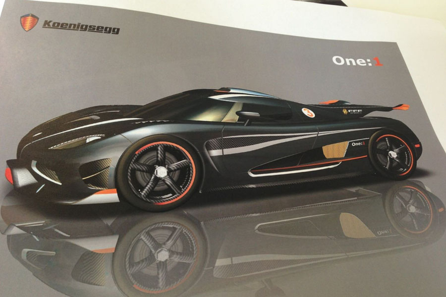 Οι άνθρωποι της εταιρείας και ο ενδιαφερόμενος πελάτης συναντήθηκαν προκειμένου να σχεδιάσουν από κοινού το αυτοκίνητο, το οποίο φέρει την ονομασία One:1. Όπως φαίνεται από τα πρώτα σκίτσα, το ονειρικό μοντέλο βασίζεται στην Agera, είναι σε μαύρο ματ χρώμα, διαθέτει ζάντες carbon, εισαγωγή αέρα στην οροφή, μεγάλη πίσω πτέρυγα και πιο δυναμικό bodykit.