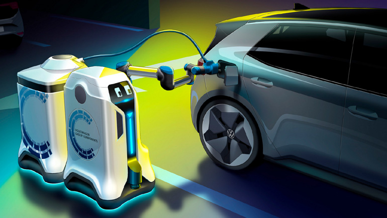 Ωστόσο, η Volkswagen πηγαίνει ένα βήμα παραπέρα, εξελίσσοντας αυτόνομα ρομπότ φόρτισης.