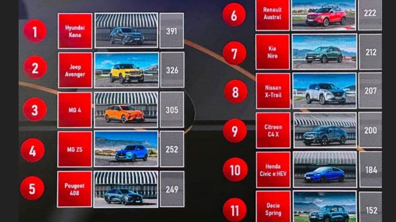 Το μεγαλύτερο ελληνικό βραβείο αυτοκινήτου κατέκτησε το νέο Hyundai Kona. Ανακηρύχθηκε “Αυτοκίνητο της Χρονιάς για την Ελλάδα 2024”. Το Hyundai Kona συγκέντρωσε συνολικά 391 βαθμούς, έναντι 326 του Jeep Avenger και 305 του MG4. Την πρώτη πεντάδα έκλεισαν τα MG ZS και Peugeot 408, με 252 και 249 βαθμούς αντίστοιχα. Η τελική εκδήλωση του ανεξάρτητου δημοσιογραφικού θεσμού -φέτος συμπλήρωσε το 17 έτος- πραγματοποιήθηκε στην πίστα των Μεγάρων.