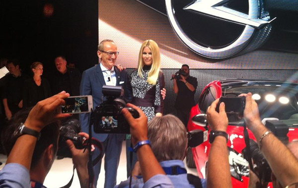 Το supermodel συνοδευόταν από τον διευθύνων σύμβουλο του Opel Group, Dr. Karl-Thomas Neumann, ο οποίος οδηγούσε το καινούργιο μικρό μοντέλο. Με την είσοδο της 44χρονης Schiffer τα φλας άστραψαν, καθώς ακόμα και σε αυτή την ηλικία παραμένει μια εντυπωσιακή γυναίκα.