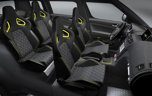 Στο εσωτερικό έχουν τοποθετηθεί καθίσματα Recaro, οι επενδύσεις των θυρών είναι από ανθρακονήματα, με τα πατάκια και αρκετά ακόμα τμήματα του πατώματος να είναι από αλουμίνιο.