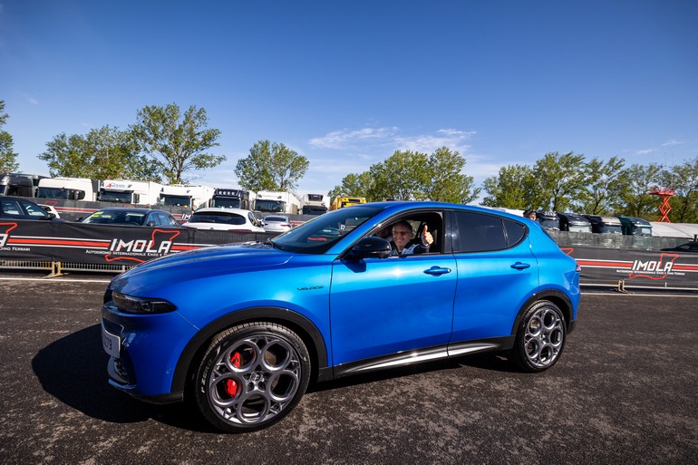 Στην πίστα της Imola έφθασε οδηγώντας την νέα Alfa Romeo Tonale που παρά το γεγονός ότι είναι το πρώτο εξηλεκτρισμένο μοντέλο της μάρκας, διατηρεί το DNA του Ιταλικού σπορ χαρακτήρα.