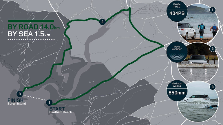 Πρόκειται για την απόλυτη πρόκληση για ένα αυτοκίνητο. Στόχος ήταν το καινούργιο Range Rover Sport P400e να περάσει από την παραλία Bantham του South Devon στο νησί Burgh, πριν τους Keri-Anne Payne και Ross Edgley.