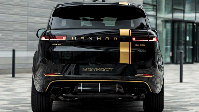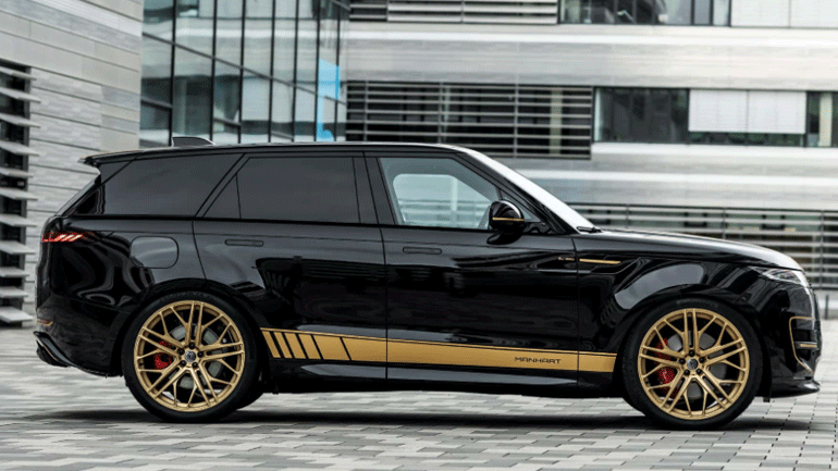 Η Manhart μείωσε επίσης το ύψος του Range Rover Sport κατά 30 χιλιοστά, ενώ ταυτόχρονα πρόσθεσε ένα νέο σετ τροχών διαμέτρου 24 ιντσών. Εξωτερικά δεν υπάρχει καμία αλλαγή παρά μόνο ένας νέος χρωματισμός με χρυσές πινελιές. Χάρη στο διακοσμητικό σετ MANHART, πολλά γράμματα σε χρυσό χρώμα και διακοσμητικές λωρίδες εκτείνονται πάνω από το μαύρο χρώμα του.