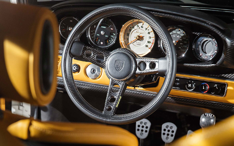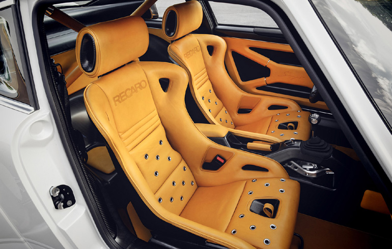 Φυσικά, η 964 έχει αναβαθμιστεί πλήρως. Τόσο στο αμάξωμα, όσο και στην καμπίνα έχει χρησιμοποιηθεί αρκετό carbon, τα καθίσματα προέρχονται από τη Recaro και όλες οι επιφάνειες καλύπτονται από δέρμα σε πορτοκαλί και μαύρη απόχρωση. Οι ζάντες φέρουν την υπογραφή της BBS, από πίσω βρίσκονται κεραμικά φρένα της Brembo, τα ελαστικά Pilot Sport Cup 2 είναι της Michelin και η ανάρτηση με τα ρυθμιζόμενα αμορτισέρ της Williams Advanced Engenireeing.