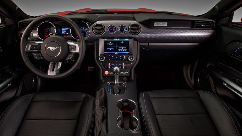 Η Mustang Blue Edition, από την άλλη, διατίθεται προς παραγγελία είτε με τον 5.0L V8 είτε με τον 2.3 EcoBoost των 317 ίππων. Το αμάξωμα είναι βαμμένο σε Grabber Blue απόχρωση, έχοντας μαύρες ρίγες στο καπό και την οροφή, αλλά και μαύρες ζάντες αλουμινίου 19 ιντσών. Φυσικά, και από τις δύο δεν λείπει το σύστημα πολυμέσων SYNC 3 με οθόνη αφής 8 ιντσών, που επιτρέπει στους οδηγούς να εντοπίζουν γειτονικά καφέ, σταθμούς ανεφοδιασμού ή πάρκινγκ αυτοκινήτων, σταθμούς τρένων, αεροδρόμια και ξενοδοχεία, με φωνητικές εντολές.