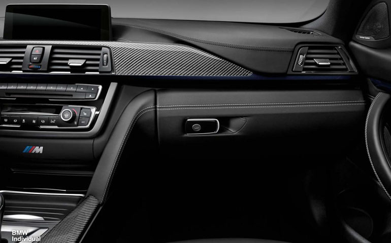 Τα carbon διακοσμητικά στο ταμπλό, η μπλε μεταλλική απόχρωση, τα σήματα M και το δέρμα υψηλής ποιότητα σε κεντρική κονσόλα και μοχλό ταχυτήτων, αναδεικνύουν την κομψότητα και το σπορτίφ προφίλ του αυτοκινήτου.