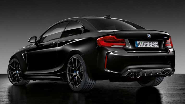 Η M2 Coupe Edition Black Shadow διατίθεται αποκλειστικά με την εξωτερική απόχρωση «Sapphire Black metallic». Εξοπλίζεται με black matt σφυρήλατες ζάντες αλουμινίου 19 ιντσών, εξωτερικούς καθρέπτες σε φινίρισμα carbon, μάσκα M και διακοσμητικές μπάρες για τα πλαϊνά πάνελ σε high-gloss black.