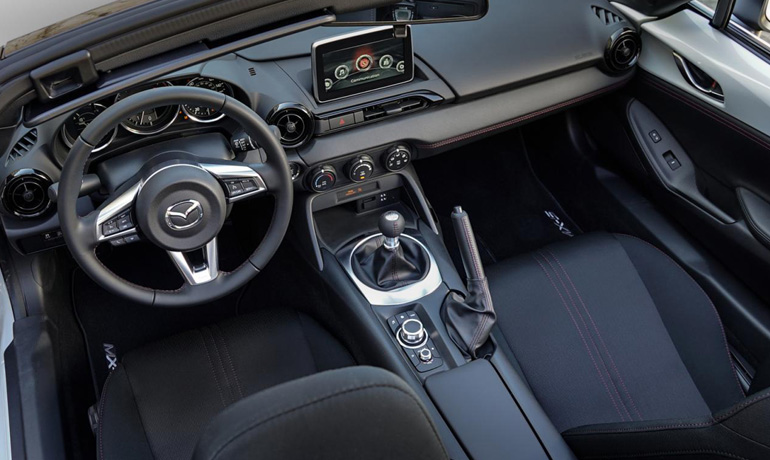 Στον εξοπλισμό περιλαμβάνεται η οθόνη αφής 7 ιντσών, το ηχοσύστημα της Bose με 9 ηχεία και δύο θύρες USB. Προαιρετικά, υπάρχει ένα ακόμα πακέτο με φρένα της Brembo, ζάντες ελαφρού κράματος της BBS, μαρσπιέ και πίσω προφυλακτήρα από το MX-5 Global Cup.