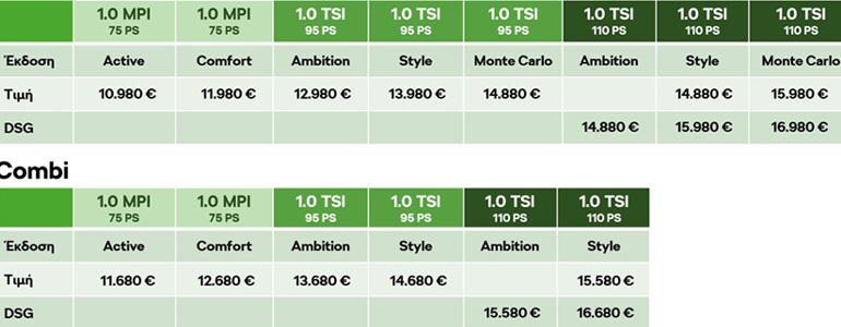 Η Fabia προσφέρεται σε hatch και compi αμάξωμα, με τις τιμές να ξεκινούν από 10.980 ευρώ.