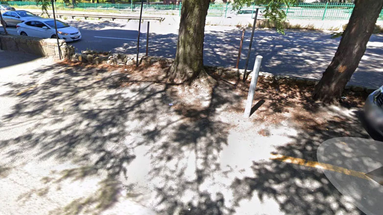 Η θέση αυτή στην Back Street, περιλαμβάνει έναν ασημένιο στύλο στο ένα άκρο και μια κίτρινη ζωγραφισμένη γραμμή στο άλλο, ενώ φαίνεται να υπάρχει και ένα δέντρο που προσφέρεται… δωρεάν.