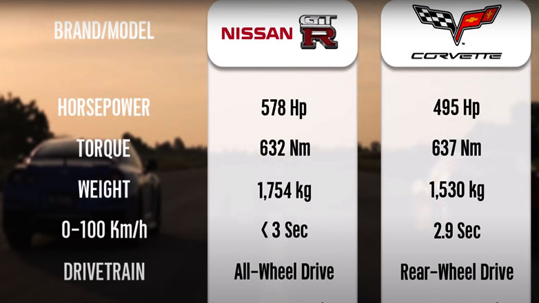 Μία μονομαχία επιτάχυνσης, δύο αυτοκίνητα, δύο διαφορετικές σχολές. Από τη μία το καμάρι των Ιαπώνων Nisan GT-R, γνωστό και με το παρατσούκλι Godzilla, από την άλλη η Chevrolet Corvette, κορυφαίος αντιπρόσωπος των αμερικάνικων muscle cars.