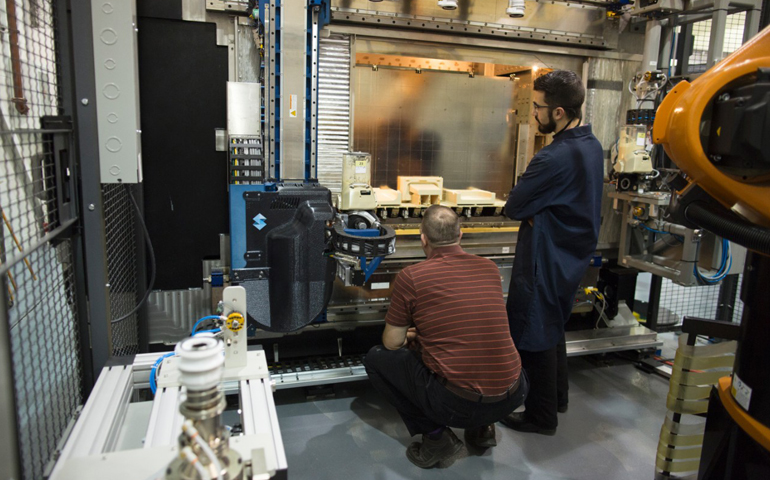 Όταν το σύστημα ανιχνεύσει ότι το δοχείο με το ακατέργαστο υλικό αδειάζει, ένας ρομποτικός βραχίονας αντικαθιστά αυτόματα το άδειο δοχείο. Αυτό επιτρέπει τη συνεχή λειτουργία του εκτυπωτή επί ώρες ή και ημέρες χωρίς επίβλεψη. Παράλληλα, οι μηχανικοί δεν χρειάζεται να περιμένουν μήνες μέχρι την τελική κατασκευή του εξαρτήματος, όπως γίνεται με τις παραδοσιακές μεθόδους. Η 3D εκτύπωση επιτρέπει τη δημιουργία σε λίγες μέρες και με σημαντικά μικρότερο κόστος.