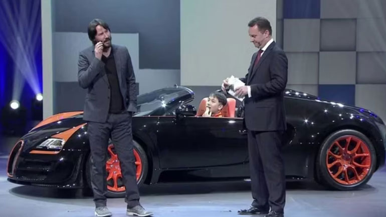 Bugatti Veyron: Η Bugatti Veyron του Keanu είναι εξοπλισμένη με έναν κινητήρα 8,0 λίτρων quad-turbo W16 που παράγει 1.001 ίππους και 1.300 Nm ροπής. Μάλιστα εφοδιάζεται με επτατάχυτο κιβώτιο διπλού συμπλέκτη και έχει τελική ταχύτητα στα 431χλμ./ώρα μαζί με 0-100 στα 2.5 δευτ.