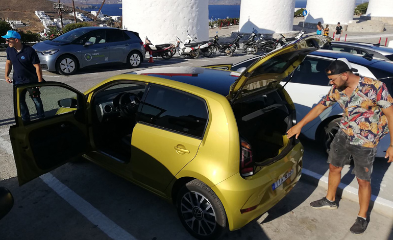 Παράλληλα, την ίδια περίοδο έγινε η παράδοση ενός στόλου ηλεκτρικών αυτοκινήτων στις εταιρείες ενοικίασης (Rent a Car) που δραστηριοποιούνται στο νησί. Η συγκεκριμένη ενέργεια έγινε στο πλαίσιο ειδικής συνεργασίας με τις επιχειρήσεις αυτές, που στόχο έχει τη χρήση των ηλεκτρικών αυτοκινήτων κατά τη διάρκεια της θερινής περιόδου για απόκτηση πολύτιμης εμπειρίας στην ένταξη και διαχείριση ηλεκτρικών οχημάτων στους στόλους τους.