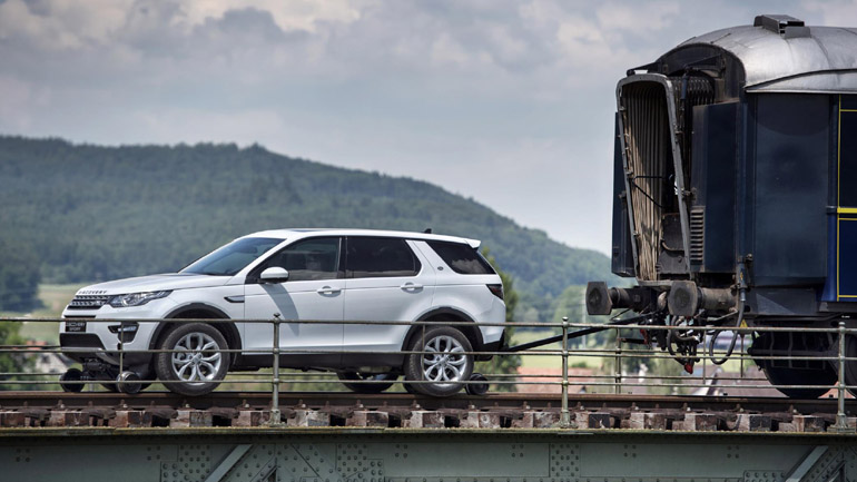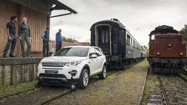 Τις υψηλές δυνατότητες του νέου Discovery Sport θέλησε να αναδείξει η βρετανική φίρμα, βάζοντας το αυτοκίνητο να ρυμουλκήσει ένα τρένο πάνω σε ράγες.