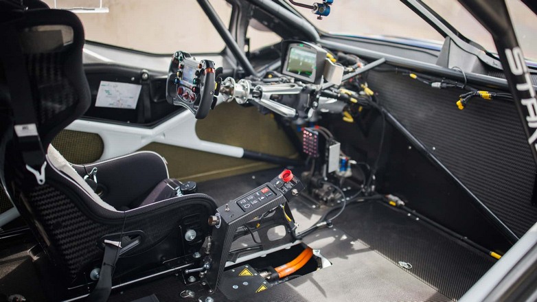 Στο εσωτερικό υπάρχουν τα απολύτως απαραίτητα όπως ένα αγωνιστικό κάθισμα, ένα τιμόνι, μία μικρή οθόνη και μία αυτοσχέδια κεντρική κονσόλα περιέχει δύο σειρές κουμπιών που ελέγχουν διάφορες λειτουργίες του οχήματος.