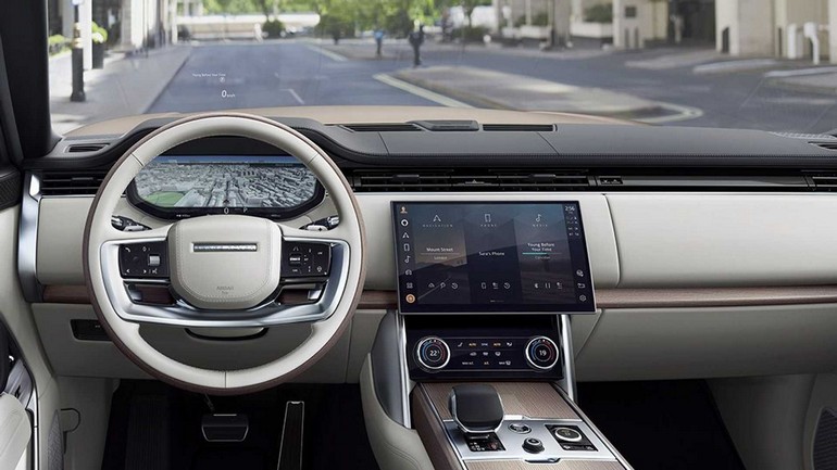 Στο εντυπωσιακά μεγάλο αλλά και premium εσωτερικό του νέου Range Rover οδηγός και επιβάτες θα συναντήσουν συνολικά 5 μεγάλες οθόνες. Ψηφιακός πίνακας οργάνων 13.7ιντσών, κεντρική οθόνη του ταμπλό 13.1 ιντσών,  δύο ακόμη αφής 11.4 ιντσών στις πλάτες των πίσω καθισμάτων και μία τελευταία ανάμεσα στους πίσω επιβάτες. Η γενική φιλοσοφία του εσωτερικού ακολουθεί μίνιμαλ γραμμή, τονίζοντας ακόμα περισσότερο την τεράστια ευρυχωρία του μοντέλου.