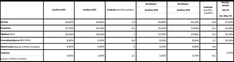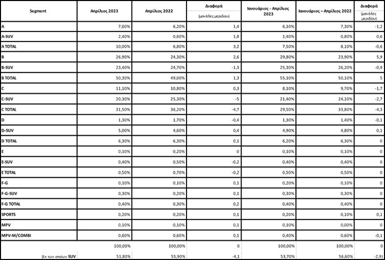 Από τον Ιανουάριο μέχρι τον Απρίλιος 2023 η αύξηση δείχνει να είναι μεγάλη και αυτό γιατί τους προηγούμενες μήνες οι ταξινομήσεις έφθασαν στα ύψη. Από τον Ιανουάριο έως τον Απρίλιο πέρυσι ταξινομήθηκαν 31.716 αυτοκίνητα ενώ το ίδιο διάστημα φέτος ταξινομήθηκαν 44.014 Ι.Χ