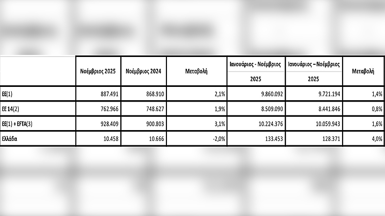 Τα στοιχεία που έχουμε για την Ευρώπη είναι από τον Ιανουάριο έως και τον Νοέμβριο. Το 2024 ταξινομήθηκαν 868.910 και το 2025 το αντίστοιχο διάστημα ταξινομήθηκαν 887.491.